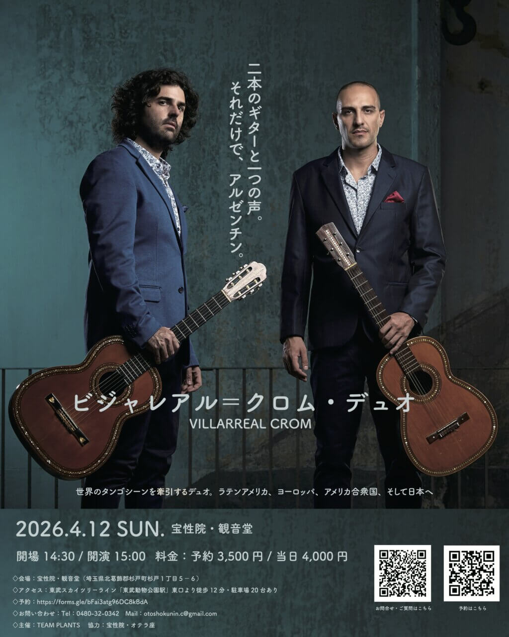 アルゼンチンギター&タンゴ コンサート パトリシオ・クロム×フアン・ビジャレアル来日公演2026年…