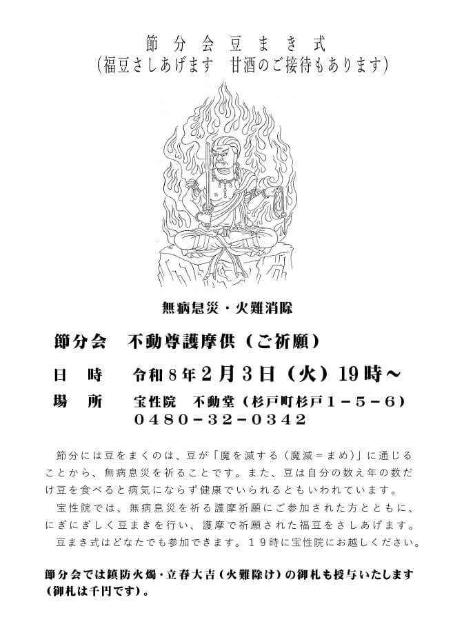 宝性院・杉戸不動尊では2月3日午後7時より節分会の豆まき式を厳修します